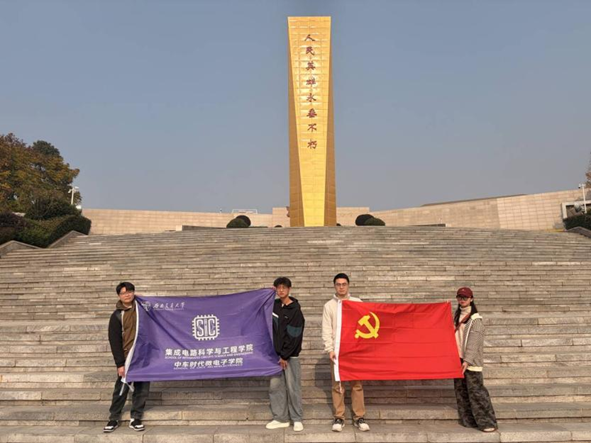 支部组织成员赴成都市烈士陵园开展"追寻红色足迹,砥砺奋进之志"主题实践活动。在庄严肃穆的烈士纪念碑前,全体支部成员整齐列队,向革命先烈敬献鲜花并肃立默哀,表达对革命先辈的深切缅怀和崇高敬意。随后,支部成员参观了革命烈士纪念馆,更加深刻领会到了革命先烈在民族存亡之际所展现出的坚定信念与视死如归的浩然正气,也对抗战精神的内核有了更为深刻的领悟。活动尾声的专题研讨中,成员们结合所见所感畅谈体会,纷纷表示要将敬仰之情转化为奋进动力,在新时代新征程上展现青年担当。