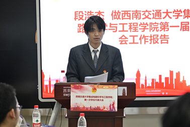 随后,全体代表听取了学生会办公部部长段浩杰作题为《首启“芯”程 “芯”系青春》的第一届学生会工作报告。报告系统回顾了过去一段时间学生会在思想引领、权益维护、活动组织、学风建设等方面的工作成果,并展望未来工作的方向。