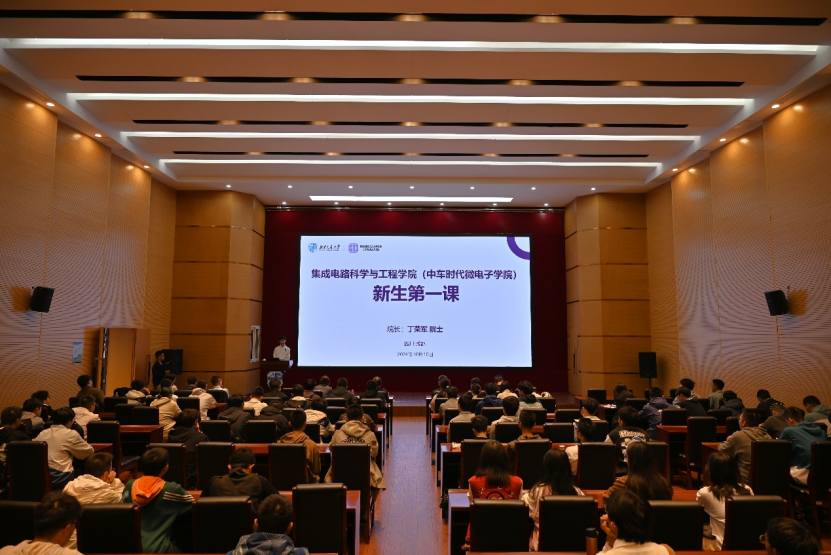 院长丁荣军院士讲授“新生第一课”。学院领导班子、全体教师及2024级新生一同参加此次活动。活动由大功率半导体专业2024级2班学生漆益豪主持。