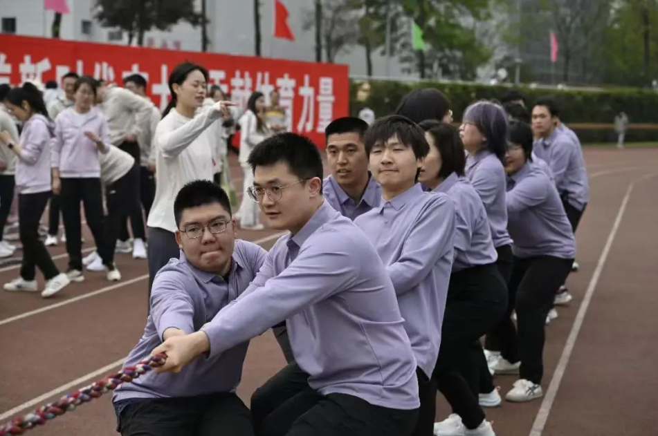 趣味项目成为师生们欢乐的海洋。“鼓动人心” 项目中,大家齐心协力,通过拉动绳索让球在鼓面上跳跃,默契配合间满是欢声笑语;“拔河” 比赛里,队员们咬紧牙关,齐声呐喊,用团结的力量对抗对手;“精益求精” 项目中,旋转的齿轮与奔跑的身影交织,碰撞出智慧与协作的火花。在这里,胜负不再重要,师生们尽情享受着运动带来的快乐,增进了彼此间的情谊。
