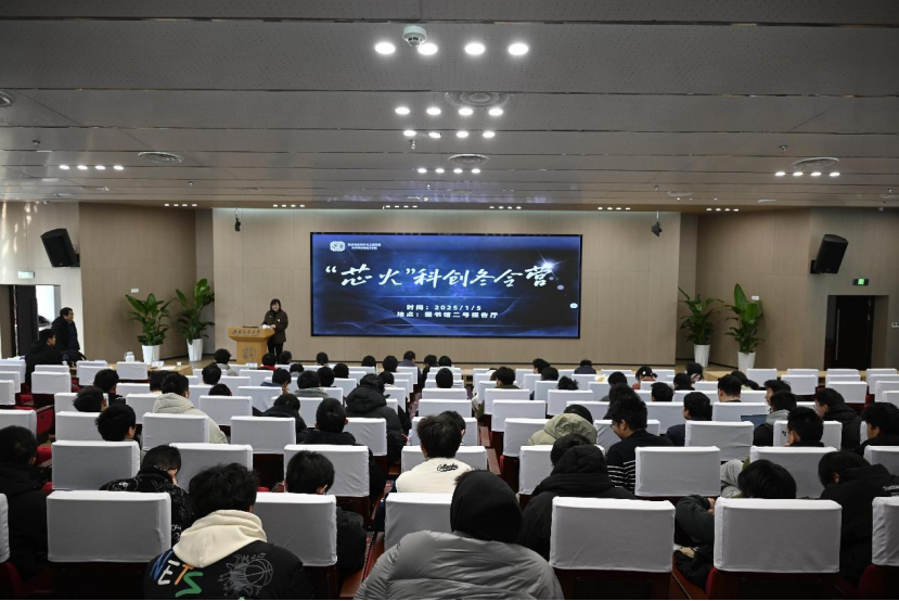 集成电路学院 “芯火” 科创冬令营开营仪式在犀浦校区图书馆二号报告厅举行。学院常务副院长郝莉、国际创客比赛评委詹娜、计算机与人工智能学院教师李君、学院教师董金文、张瑾,电气工程学院研究生史润博,学院辅导员及全体 2024 级本科生参会,仪式由学院党委副书记王燕主持。
