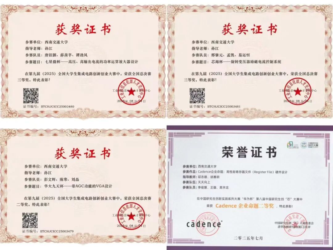 2025 年研究生竞赛工作的优异成绩,是学院深化创新创业教育改革的重要成果。通过以赛促学、以赛促练、以赛促创,不仅提升了研究生的创新实践能力,也为集成电路领域培养了一批兼具理论基础与工程能力的高素质人才。