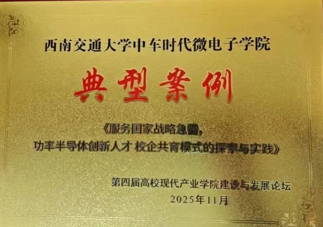 申报的《服务国家战略急需,功率半导体创新人才校企共育模式的探索与实践》成功入选,学校代表受邀参会并获颁典型案例证书。该案例集中展现了学校立足国家功率半导体产业发展需求,通过校企协同构建创新人才培养体系的实践成果,为高校服务关键核心技术领域人才培养提供了可借鉴的经验。