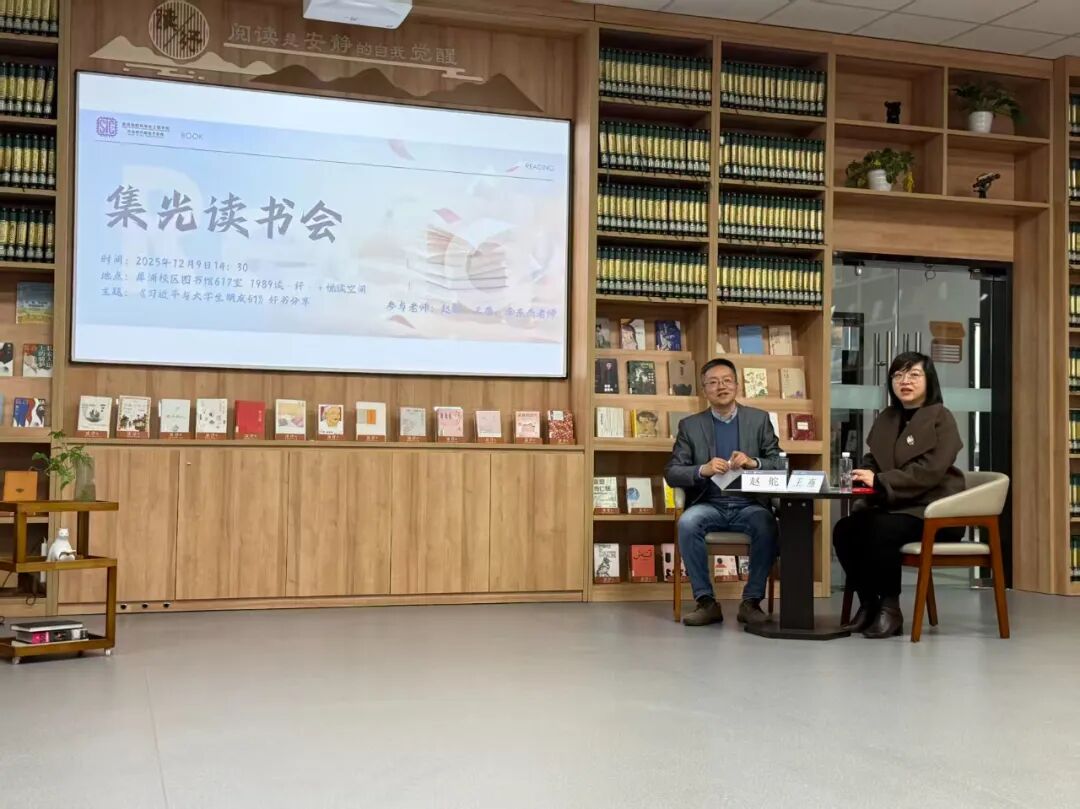 学生会在犀浦校区图书馆617室“读纾+阅读空间”成功举办第三期“集光读书会”。学院党委书记赵舵、党委副书记王燕,团委书记李东杰,辅导员苏放与学生会全体成员围坐一堂,共读《习近平与大学生朋友们》第二卷,以书为媒共话初心使命,让思政教育在沉浸式交流中走深走实。