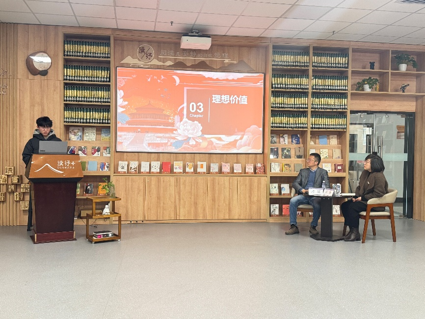 随后,办公部部长李博以《唤醒文化基因·青年文化自信》为题引读。他紧扣书中习近平总书记对青年学子的期许,结合集成电路领域国际交流背景,从“理工科青年如何传承文化根脉”切入,剖析文化自信的时代价值,引发全场共鸣。现场交流氛围热烈,段浩杰提出以辩证思维对待文化交融,坚守传统精华、包容外来养分;于嘉浩呼吁理性看待文化自信,摒弃畸形追捧心态;李俊骁坦诚困惑,道出工科生平衡专业能力与人文素养的心声。